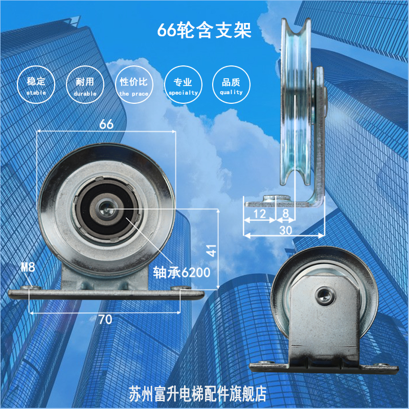 Elevator door wire rope wheel Iron wheel with bracket 90 66 65 Drive wheel bearing 6200 Floor door accessories