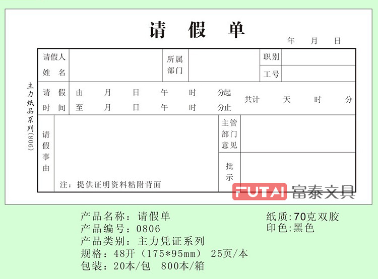 Accounting certificate, main force 48K leave form, sick leave note, employee leave note, company leave application certificate
