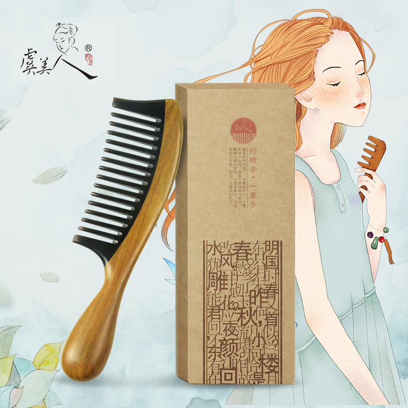 Yu beauty green sandalwood comb horn comb engraved word no static sandalwood wide tooth massage scalp home gift woman
