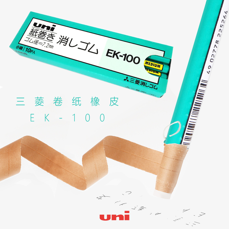 Japan Mitsubishi Drum Toilet Paper Rubber EK-100 Hand Ripping Rubber Elementary School Children Pen Type Erasers Wipe Clean No Marks