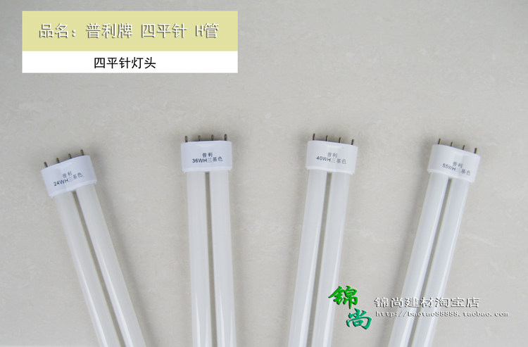 Puli Jinshang three primary color H-tube H-tube flat four-needle eye protection energy-saving lamp 6500K white light 24w36w40w55w