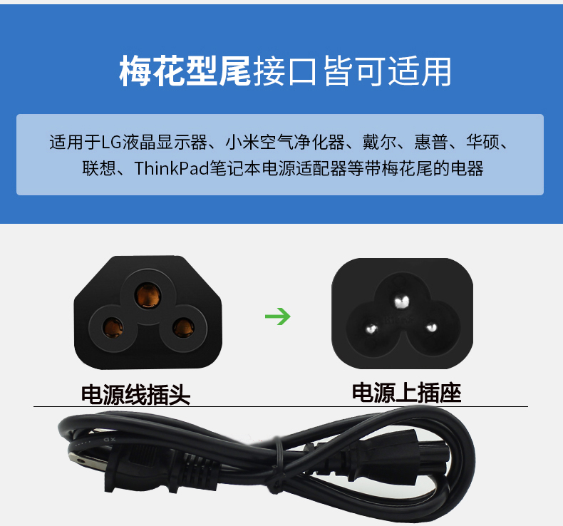 Two-port three-hole laptop pure copper 2x3 plum wire 12m two-eye three-portable power cord