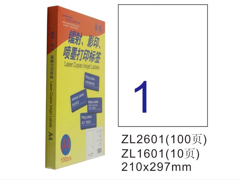 Inkjet laser Zhulian A4 computer print label paper ZL2601C adhesive sticker paper 210 * 297mm