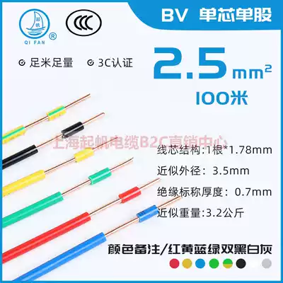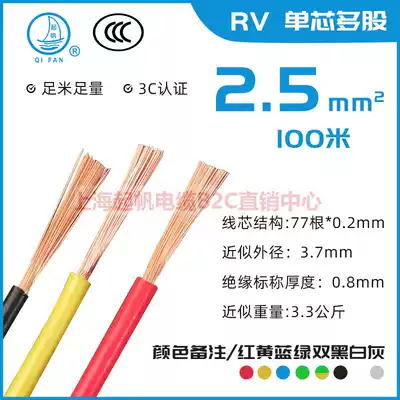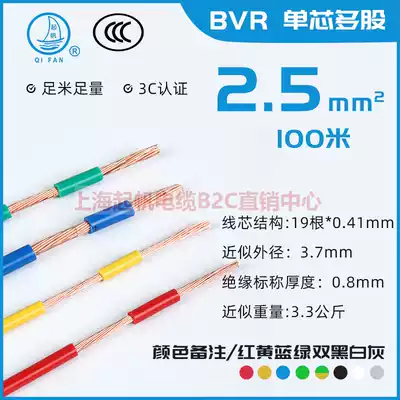 Qifan wire and cable BV BVR RV single-core power cord 2 5 square hard wire multi-strand soft wire National standard 100 meters