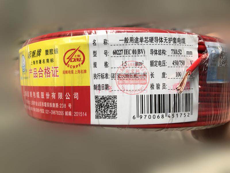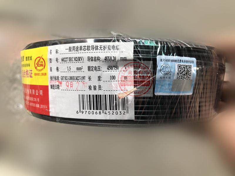 Sail wire BV BVR RV single core power cord 1 5 square hard wire copper core multi-strand soft wire GB 100 meters