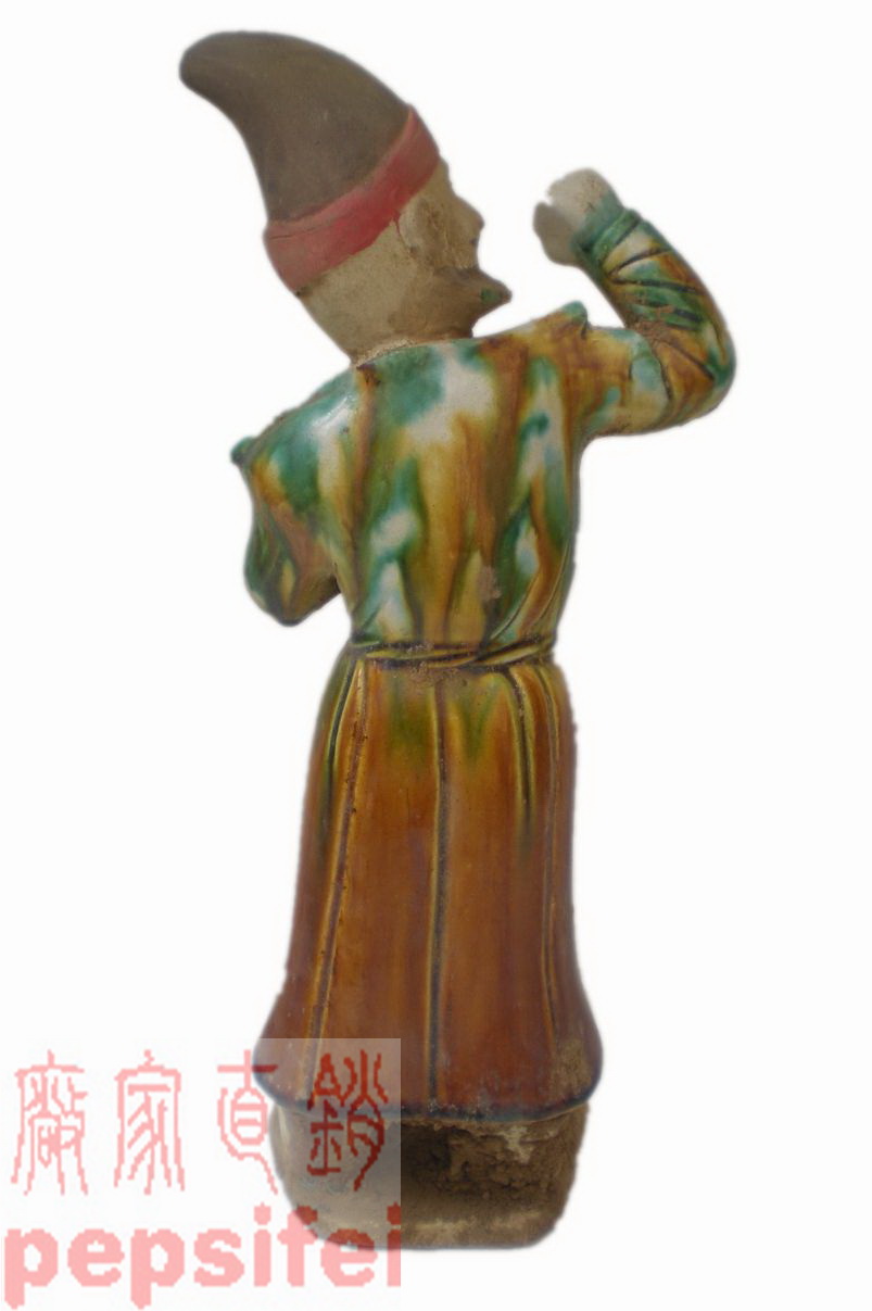 Tang tri-colored male figurines Hu maid ceramic pendulum decorated with the Tang dynasty chubby chicks serving the women's ancient fun antique bag old