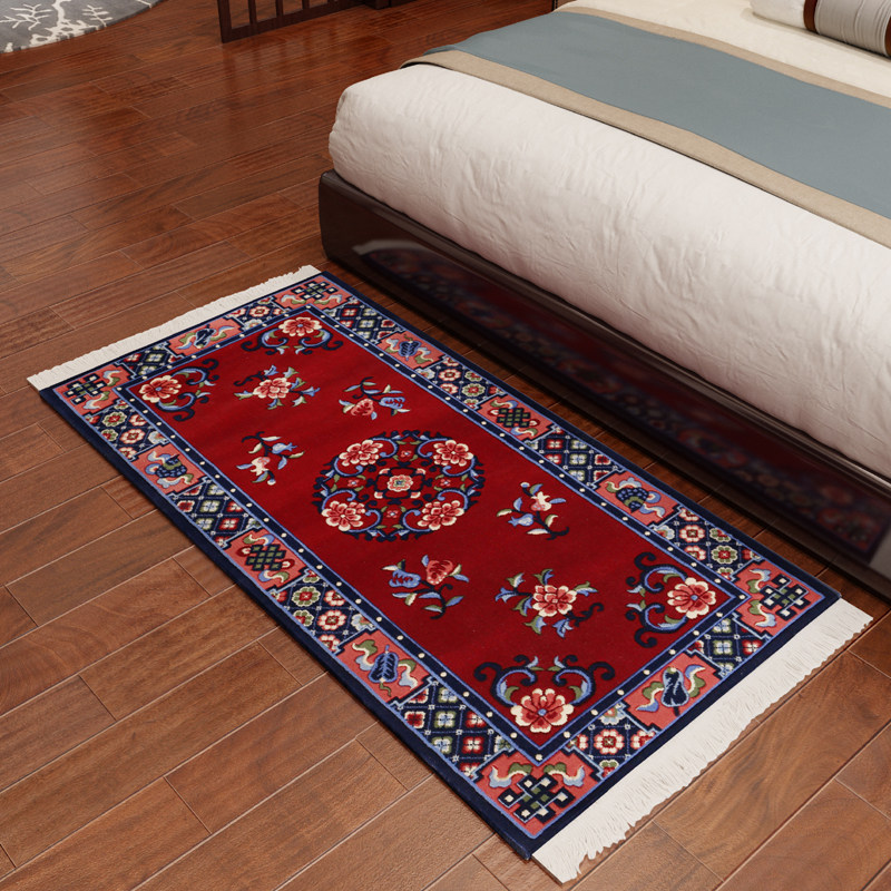 New Chinese living room Pure wool carpet Bedroom bed blanket Zen Tibetan blanket Ethnic wind study Light luxury ancient style card mat