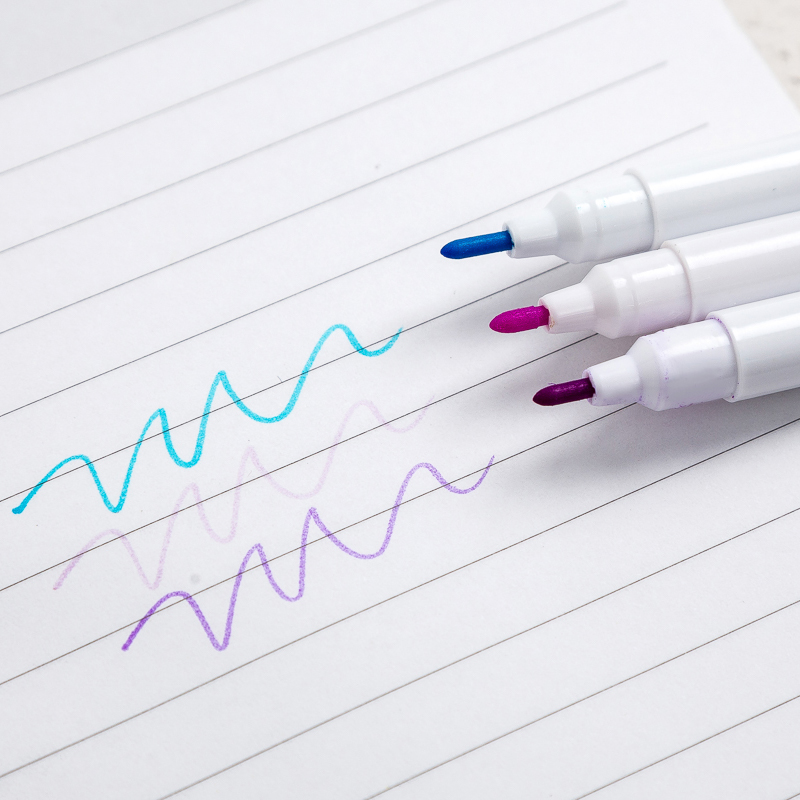 Purple empty pen 023C blue water elimination pen 023C red empty pen 023C
