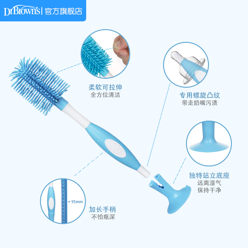 Dr. Brown Newborn Baby Bottle Nipple Brush Cleaning Kit 360 Degree Rotating Bottle Sponge Silicone