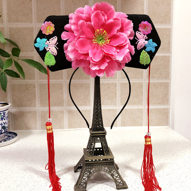 Children's flag head gagger head decorated female gog hat whole people wedding props ethnic hat stage performance Qing dynasty headwear