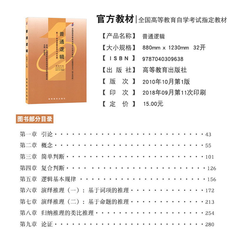 Self-examination Textbook 00024 General Logic 2010 Edition Du Guoping Higher Education Publishing House National Higher Education Self-study Examination Textbook Administrative Management Major Self-examination Bookstore