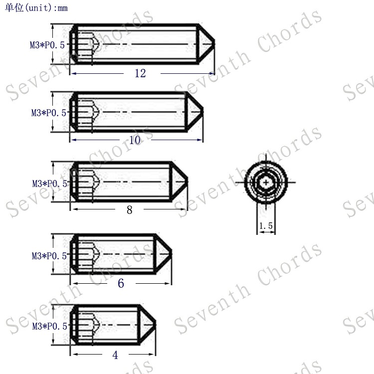 Electric guitar single swing bridge Bass bridge string code adjustment height hexagon screw Inner 6 angle screw M3*6-12