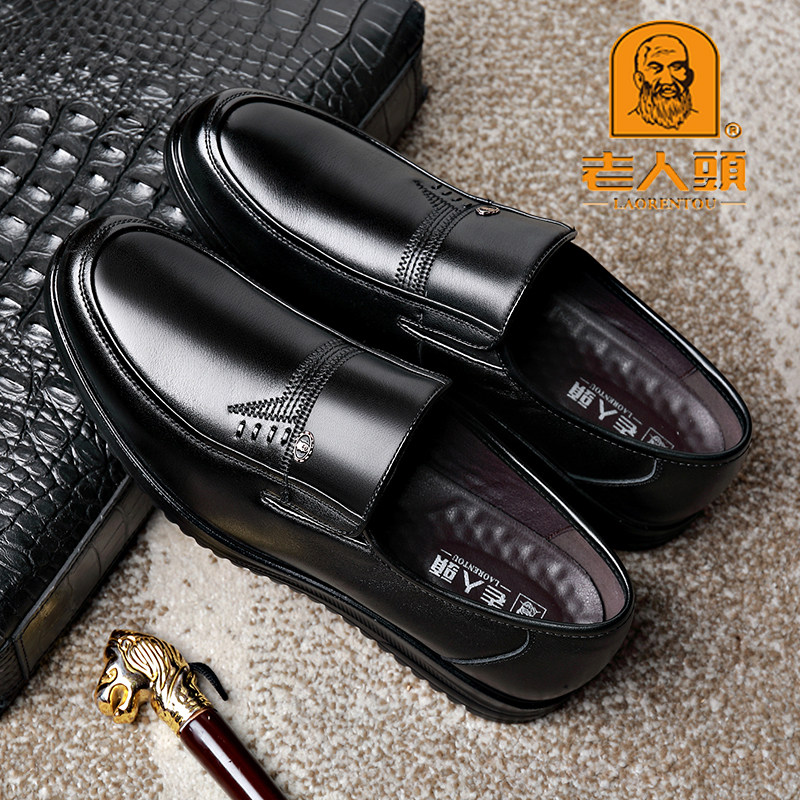Old man's head men's shoes autumn and winter leather shoes men's middle-aged business casual leather shoes plus velvet warm leather soft sole dad shoes