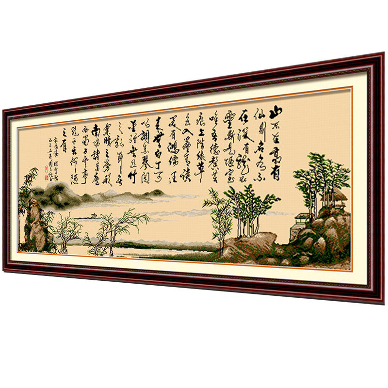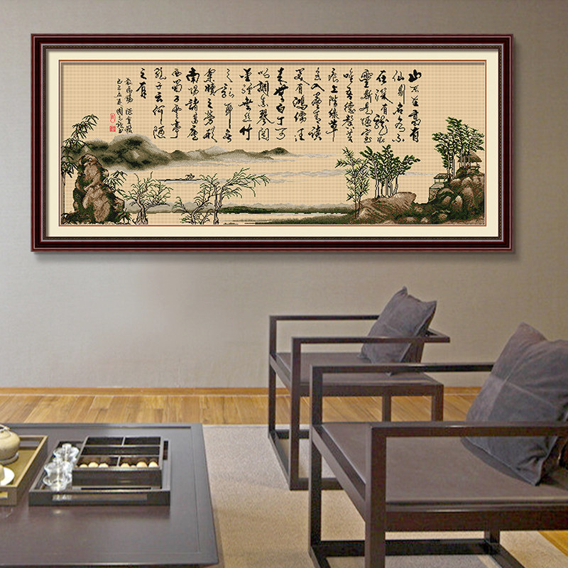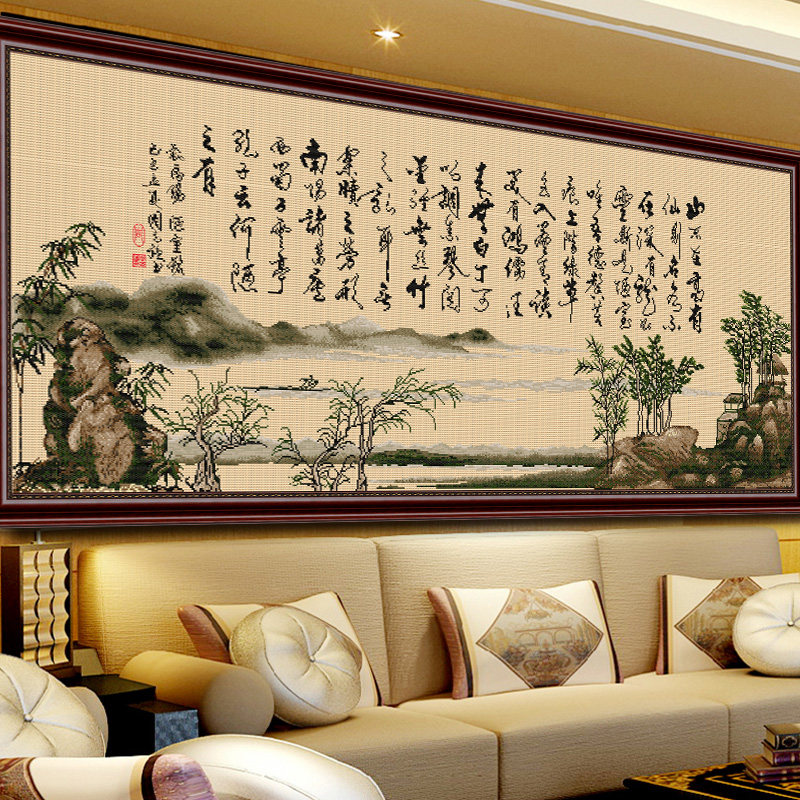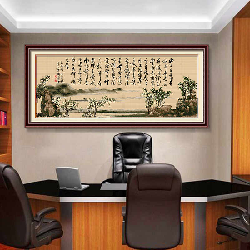 Cross embroidered 2022 new line embroidered bedroom book room Living room itself embroidered with ink version of large atmosphere for home