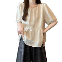 French Puff Sleeve Chiffon Short Sleeve Shirt Women's Summer Thin This Year's Popular Belly Covering Shirt Babydoll Top