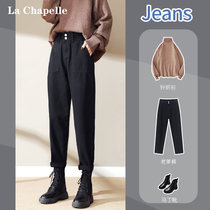 La Chapel jeans women thin loose spring and autumn winter high waist plus velvet radish straight tube father Haren pants tide tide