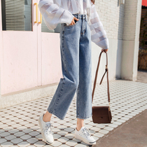 Salt denim pants female spring and autumn fashion Korean version of loose 2021 new small man retro Hong Kong flavor pants