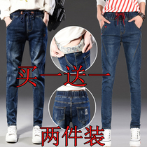 Spring and Autumn high waist elastic jeans women loose size fat mm thin net red Korean version of Harlan small foot trousers