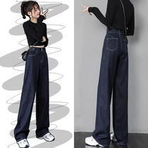 DAYU American retro dark blue jeans women's high waist straight loose slim Joker trousers Autumn New