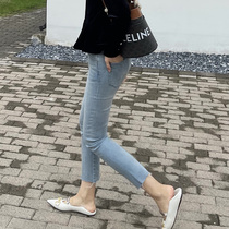 STUDIOMCC sea salt blue thin elastic high waist straight nine-point jeans female slim pipe pants 21 winter