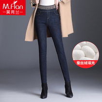 High-waisted tight plus velvet trumpet jeans women's autumn and winter pants 2021 New slim mopers