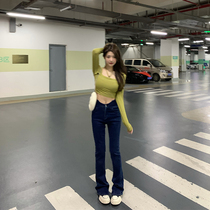 Micro horn split jeans female 2021 Spring and Autumn new small man high waist slim design sense fork mop floor pants