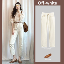 Town shop bull pants Four Seasons high quality small feet jeans Joker beige white slim straight pants women's size