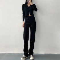 Straight jeans women's spring and autumn 2021 New High waist slim small man nine split wide leg pipe pants