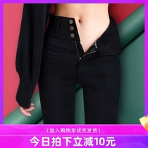 High-waisted jeans women's 2021 Spring and Autumn New velvet slim tall small man tight feet black pencil pants