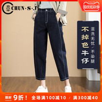 Jeans Women 2021 Spring and Autumn Loose Size Fat mm Harlem Pants Nine Pine Carrot Pants Halls