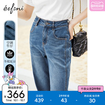 Fan Si Lanen 214357 dark blue tapered high waist jeans women autumn and winter loose thin straight radish pants