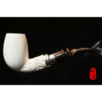 Turkish Master F YAVUZ Fernandez carved cavity 925 double silver ring meerschaum pipe C160