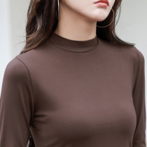 Mid-collar solid color modal long sleeve T-shirt female size wear elderly autumn clothes middle-aged mother half high collar base shirt