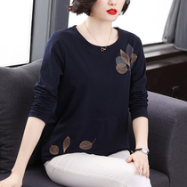 Mother cotton long sleeve T-shirt female Spring and Autumn new elderly foreign style base shirt loose age reduction belly coat