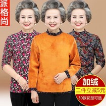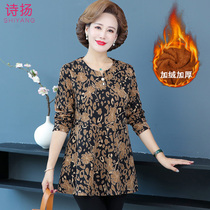 Middle-aged women plus velvet thickened base shirt middle-aged mother dress loose size autumn winter clothes foreign thermal underwear