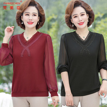 Young mother Spring and Autumn long sleeve base shirt elderly female chiffon sleeve t-shirt