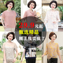 Mom summer chiffon shirt suit middle-aged summer new short-sleeved top foreign style middle-aged thin T-shirt small shirt