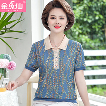 Mom outfit 2021 new summer short-sleeved middle-aged popular quality lapel T-shirt middle-aged women foreign style loose top