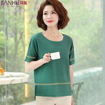 Hengyuan Xiang middle-aged mother summer thin sweater T-shirt women's Western style loose large size ice silk short-sleeved top