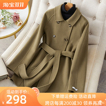 Double-sided cashmere coat women's mid-length 2022 winter new style small temperament waist short woolen coat