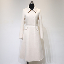 superniniyy full wool handmade double-sided cashmere coat oatmeal mid-length woolen coat women's autumn and winter
