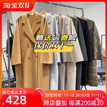 Langzi 2022 autumn and winter new high-end slim solid color double-sided cashmere coat long suit woolen coat