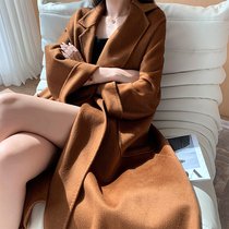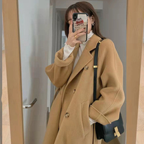 Camel double-sided cashmere coat women's 2022 autumn and winter new Korean version loose waist double-breasted woolen coat trendy