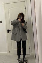 Autumn new 2022 Korean version suit jacket loose and thin temperament gray black female small all-match woolen