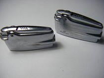French gold-plated Zaima gas lighter with thick push rod and open lid design
