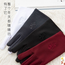 Velvet thin embroidered gloves Autumn and winter protective driving spring and autumn riding cycling cold anti-freeze warm gloves for women