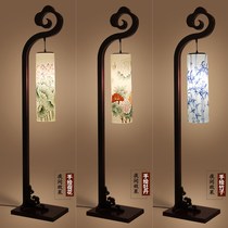 Chinese solid wood floor lamp hand painted ceramic wood lamp living room bedroom bedside lamp Chinese style study floor lamp