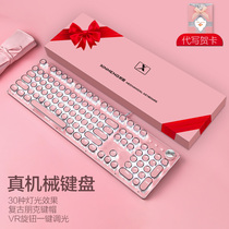 Girl cute pink lipstick color real mechanical keyboard girl heart Green axis punk retro round key chocolate backlit office net red typewriter game laptop home e-sports cf