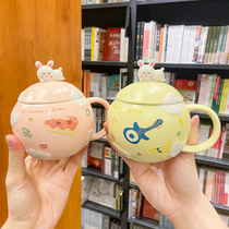 Nordic style simple mouse ceramic cup creative mug men and women home students with lid spoon breakfast cup