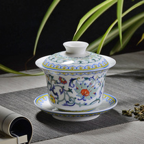 Handmade white porcelain Chinese-style cover bowl Teacup Lotus tea large three-cai bowl Ceramic Kung Fu tea with vegetarian burning tea bowl